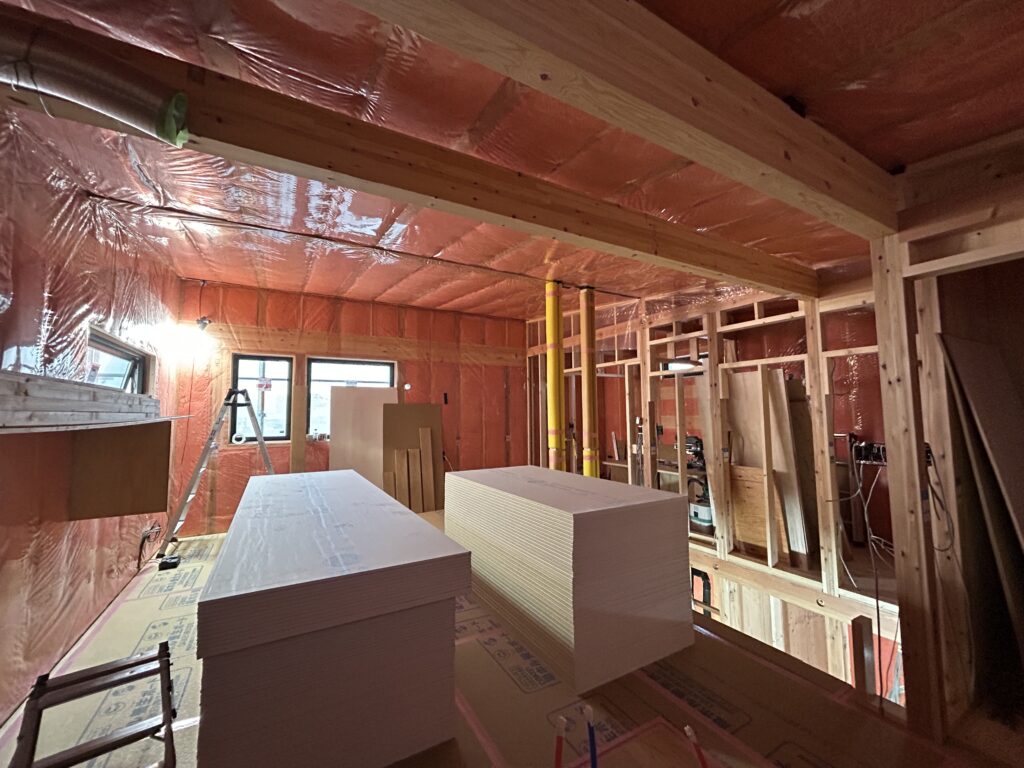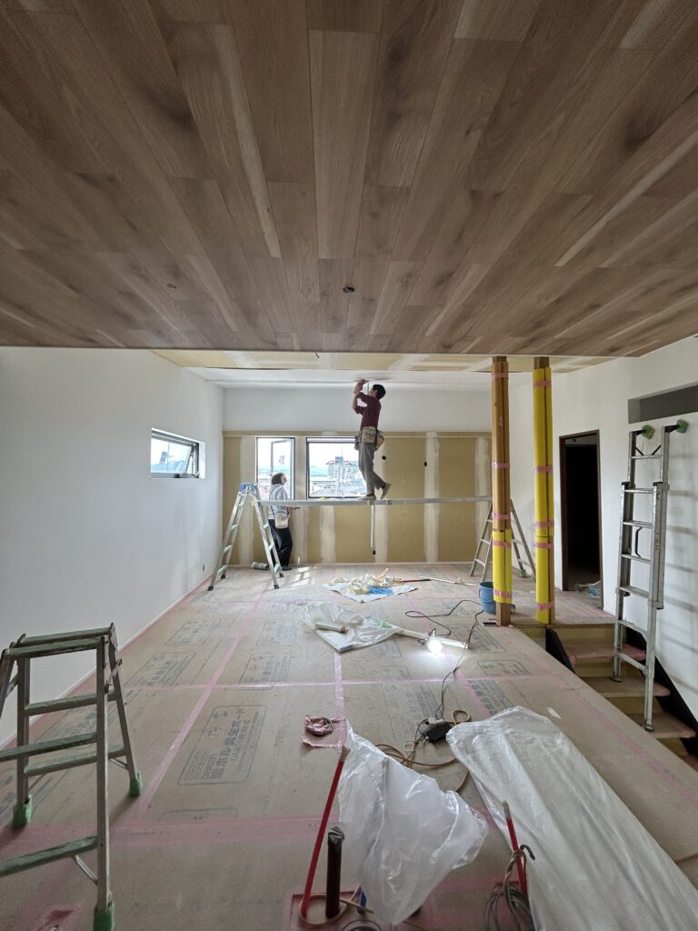 各職人さんと業者さんがいつも通り丁寧に工事を進めてくださっていて、今はクロスの施工に入っています。