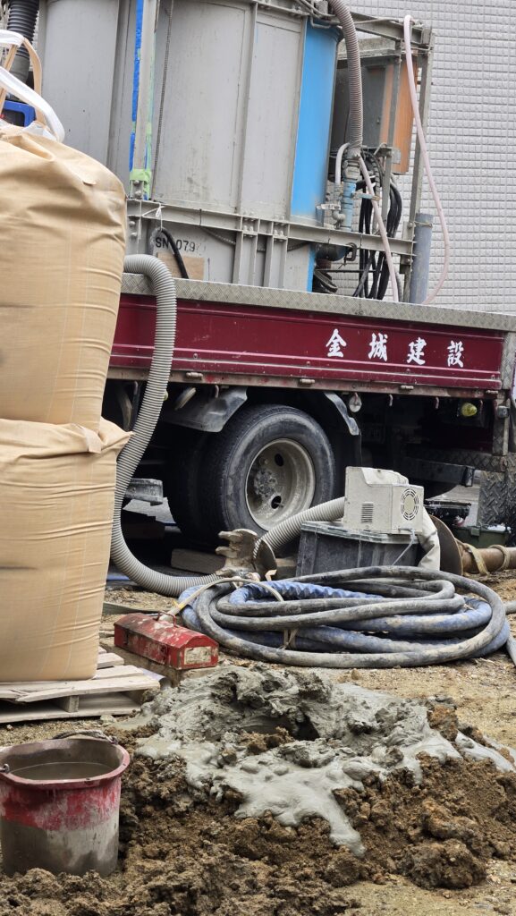先日、お家づくりがスタートしたT様邸の地盤改良工事に初めて立ち会って来ました。