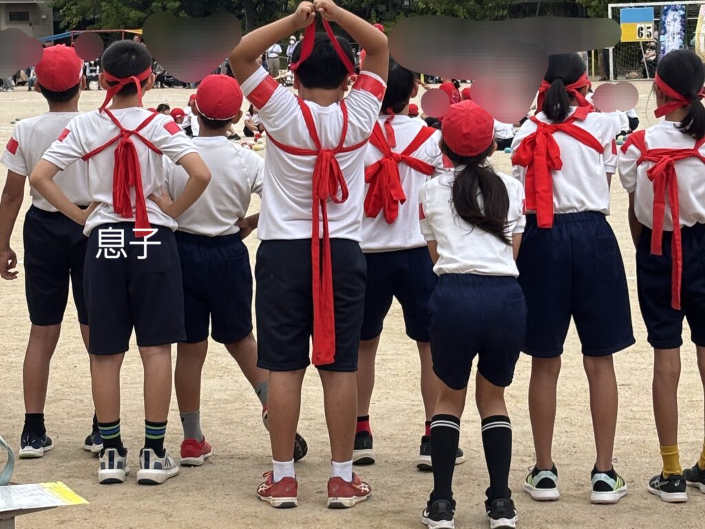 紅組の応援団として大きな声をだし、たくさん動き回り、クラスみんなで一致団結し一生懸命な姿に