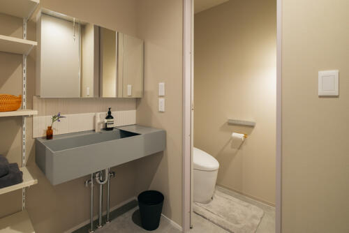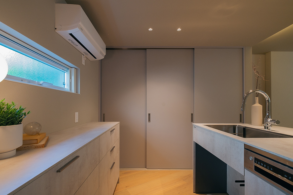 キッチン横には扉付の大容量パントリーを確保。洗面脱衣室はランドリーとしても使える広さで毎日の