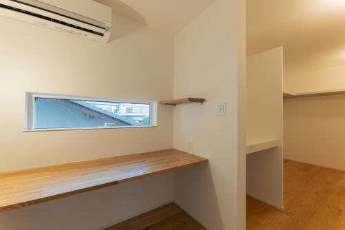 ウォークインクローゼットの横に作った書斎。洗濯動線。